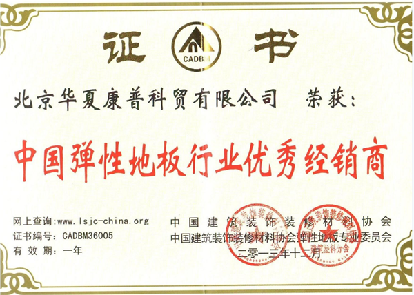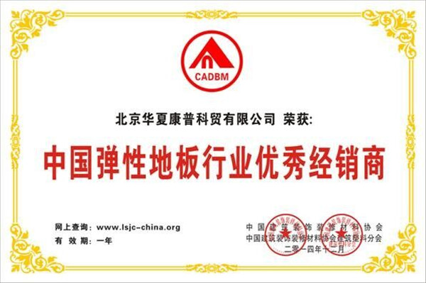 公司堅持嚴(yán)把材料質(zhì)量關(guān)、物流關(guān)、售后服務(wù)關(guān),誠信、務(wù)實做經(jīng)營,在行業(yè)內(nèi)享有很好的口碑,2013/2014年榮獲“中國彈性地板行業(yè)優(yōu)秀代理商”稱號,2015年榮獲”中國彈性地板行業(yè)優(yōu)秀代理商“稱號。